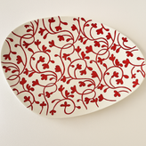 Ceramic triangular serving dish with red flower design