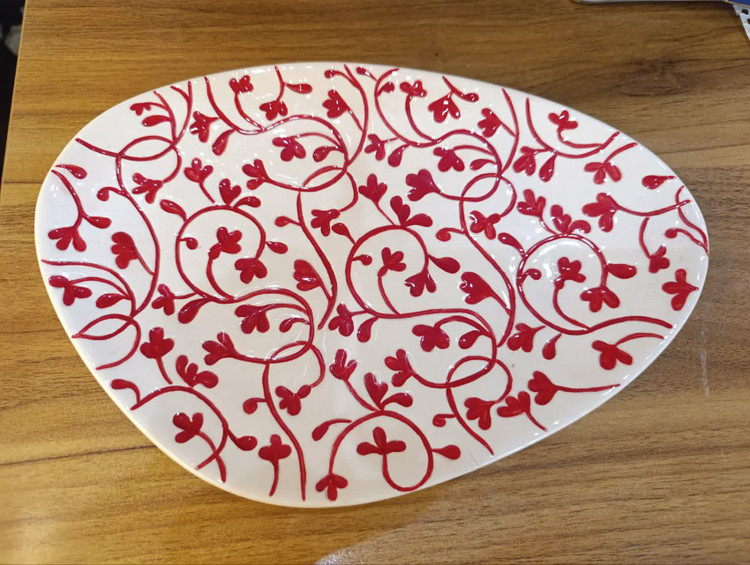 دیس سرامیکی دستساز با طرح گلهای قرمز